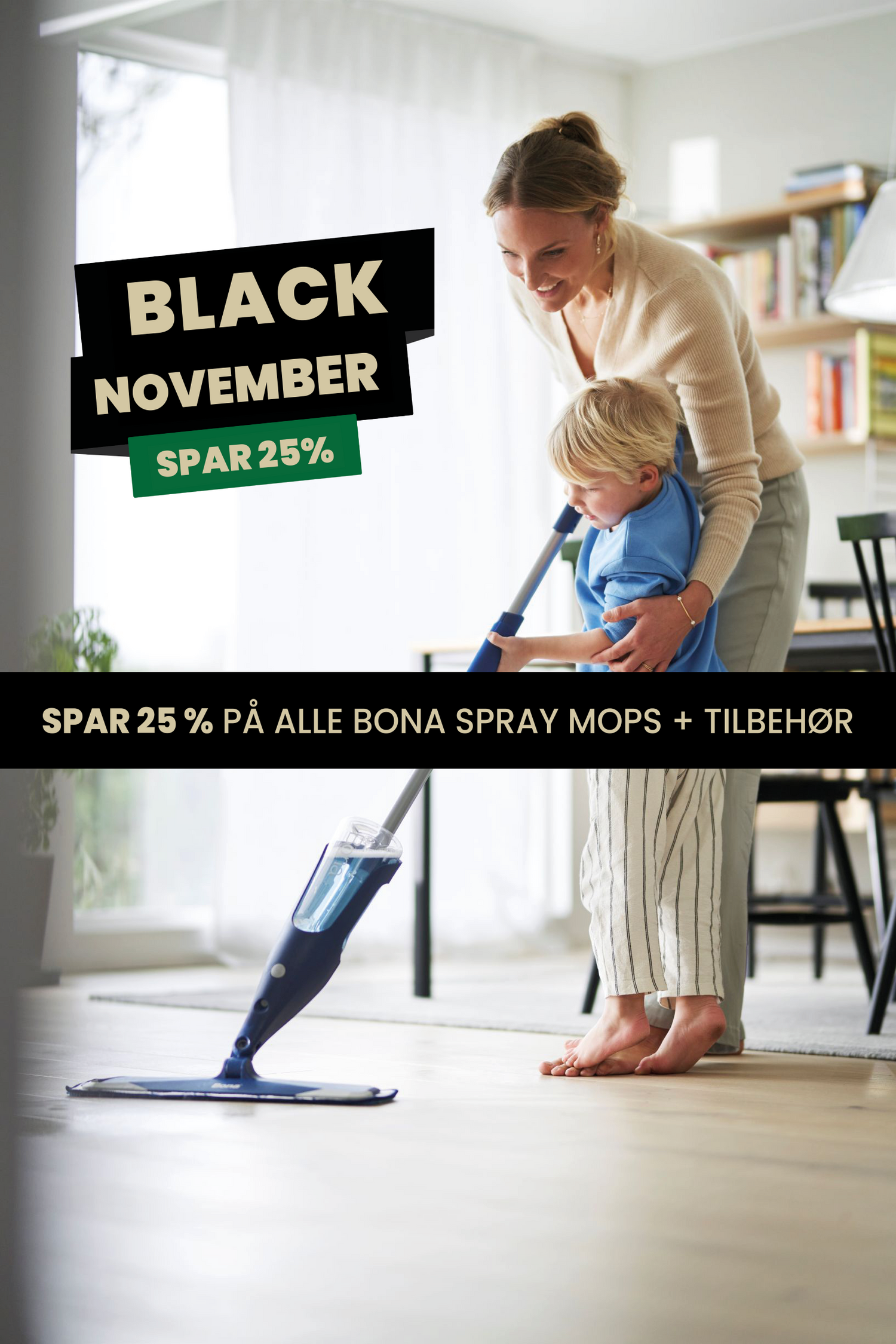 Du kan lige nu spare 25% på alle Spray Mops, refills og mikrofiberklude - gælder hele november måned 🖤