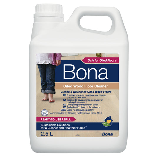 Bona Oiled Wood Floor Cleaner er baseret på planteolier, der både rengør og plejer dit olierede trægulv for at beskytte det optimalt. Bruges sammen med Bona Spray Mop for et optimalt resultat.